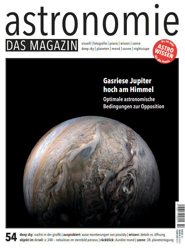 Freuen Sie sich u. a. auf diese Themen: Gasriese Jupiter hoch am Himmel - Optimale astronomische Bedingungen zur Opposition, Deep Sky - Giraffe, Ausprobiert - Proxisky-Montierungen, Planeten-Tagung